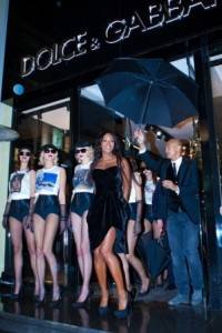 Fund-raising was at the top of agenda that night as Campbell was signing limited-edition charity T-shirts. Showcasing 14 different subjects, the T-shirts designed by Dolce & Gabbana show Campbell portrayed by some of the greatest contemporary photographers such as Patrick Demarchelier, Steven Klein and David La Chapelle. T-shirts were on a sale exclusively during the event only. All the money raised will go to flood victims through Campbell’s Fashion For Relief charity.