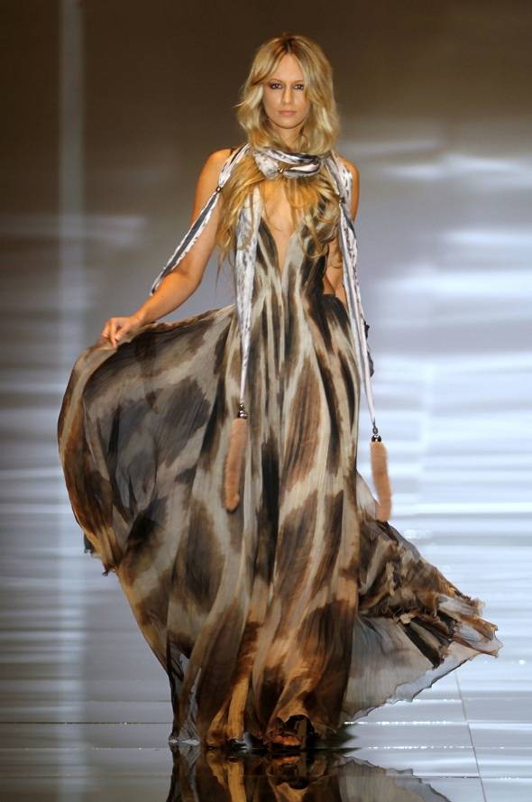 On Wednesday, I was one of the elite few who attended the highly anticipated Cavalli runway show. The first half of the show was a preview of his upcoming collection, which was an interesting combination of animal prints and fur accents with flowing chiffon fabrics. The second half of the show was a tribute to the past 15 years of Roberto Cavalli fashion featuring gowns that were worn by both Jennifer Lopez and Shakira during award shows and about 10 other breathtaking gowns with intricate details like backless silhouettes and shimmering rhinestones. In between each part was a brief video montage that projected over the runway which featured some of Cavalli’s greatest moments, many with him next to celebrities wearing his designs, and other major milestones in his career.