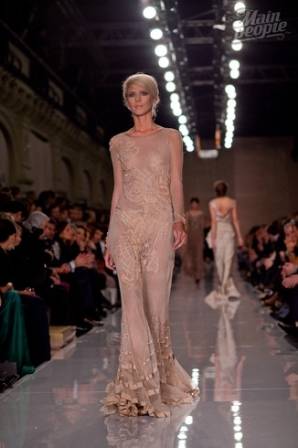 The new collection for forthcoming season didn’t become an exception and the show was spectacular. Flowing, diaphanous goddess gowns decorated with feathers and sequins; sheer, floor-sweeping frogs made from the finest materials…the designer showcased the dresses that make a heart skip a beat.