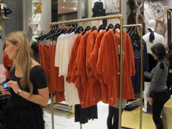 It’s hard to get your dude psyched about femme and flouncy fashion. So, I was grateful when my better half agreed to take me to the Vogue celebration of the Erin Fetherston “Juicy Loves Glamour Girls” capsule collection for Juicy Couture at the brand’s boutique on Rodeo Drive on Wednesday night. Fetherston, who crafts her own luxe line of exquisitely draped dresses, was tapped by Juicy to design the line for the Holiday season and made an appearance at the launch of the line.