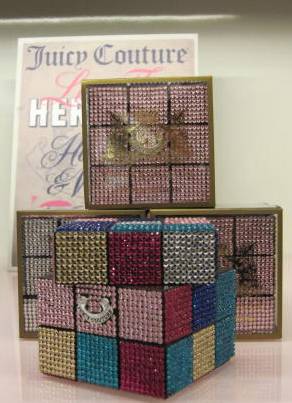 The collection–as well as the gem-encrusted cube–are available at the Juicy Couture store in Beverly Hills.