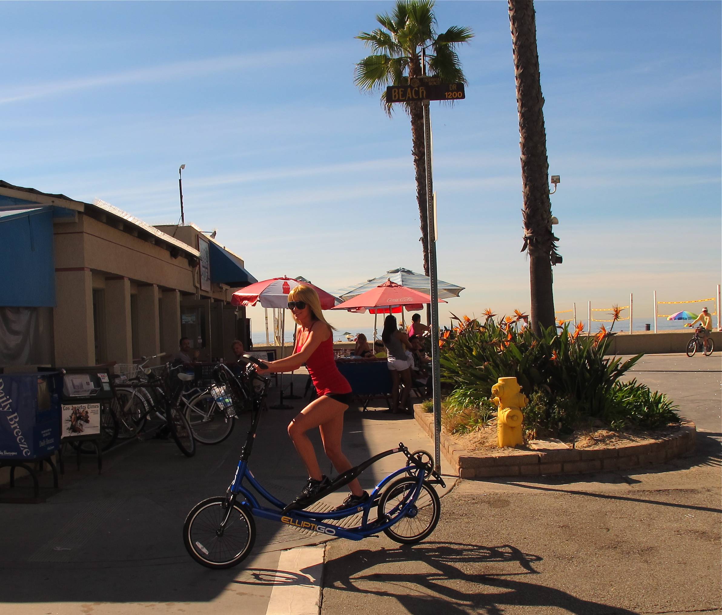 The ElliptiGo was co-created when Bryan Pate, a former Ironman triathlete, could no longer run as part of his fitness regime, teamed up with Brent Teal, a mechanical engineer to create this ingenious new workout. What makes this so brilliant is that you can get a fantastic cardiovascular workout without damaging your body all while enjoying the outdoors. I was lucky enough to enjoy a beautiful day starting off in Hermosa Beach, thanks to Hermosa Beach Cyclery, and get a fantastic workout in with a little sun and sand as my scenery. This is truly the most enjoyable low-impact cardiovascular experience I’ve ever tried.
