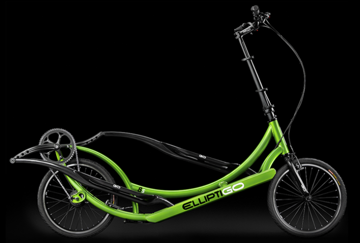 However, my cardio machine of choice at this given moment is the elliptical, because of its low impact workout and my injured back, unfortunately that thing is staying parked inside. Or, at least I thought so . . . Low and behold last week my prayers were answered and I got to try out an ElliptiGo. Say what? Picture this, a bike meets an elliptical and it is love at first sight. They mate and an elliptical bicycle babies are born called ElliptiGO .