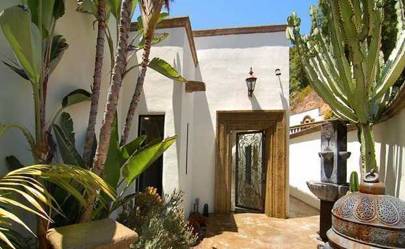 Crafted with a Mediterranean influence, this 3 level abode which just listed on Redfin, was first completed in 1954. Luckily, the home still retains the romantic Hollywood glamour of the era with a stucco exterior, flat tile roof, Cantera stone flooring, French doors in every room, a private stone patio, white-washed walls, and wooden trim. Modern additions and amenities include high-tech kitchen appliances and gadgets, a home theatre with surround sound, and several skylights.