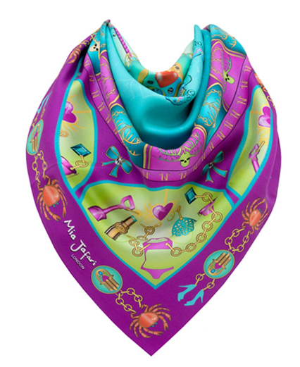 What’s more is that this British-Iranian designer has also released a collection of silk dresses printed in the same manner as her scarves. They are elegant, fun, comfortable to wear, and dazzling to the eye. Perfect for holiday attire, an evening out or gift idea, get your Mia Jafari scarves at S*uce in Dubai and Abu Dhabi, Creme in Bahrain, or shop online at www.diaboutique.com