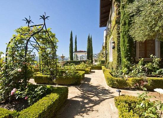 The mansion includes a library with a fireplace that is rumored to be from Napoleon’s house in France, another imported fireplace from 17th century Scotland, a lush garden where their four children can play and wrought iron entry doors that complete the mansion’s picturesque Spanish villa look.