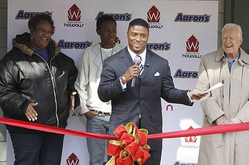 This presentation was particularly momentous, as it was the 100th home given to the needy by Warrick Dunn Foundation. To mark this momentous occasion former President Jimmy Carter was on hand as well as Atlanta Falcons owner Arthur Blank to surprise the deserving family.
