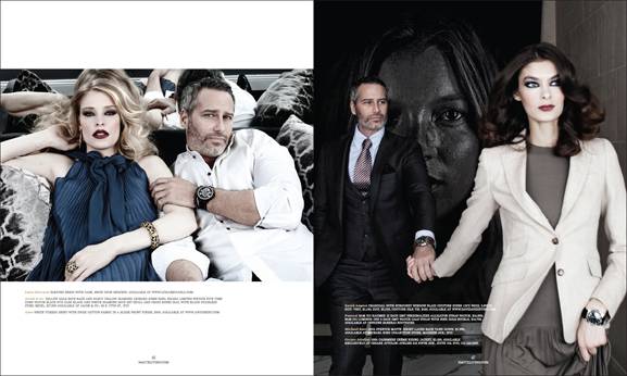Yellow gold pave back and fancy yellow diamond leopard dome ring, $50,800; Limited edition five time zone watch black pvd case black and white diamond pave set skull and cross bones dial with black stainless steel bezel, $27,800 available at Jacob & Co., 48 E. 57th St., NYC
