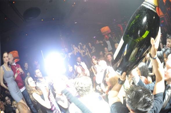 Nearby at a VIP table was the notorious purchaser of the $100,000 30-liter bottle of Armand de Brignac Champagne on New Year’s Day. He made another large purchase last night – a 15-liter bottle of Taittinger Champagne for his table.
