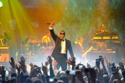 The first hour of 2011 brought plenty of surprises as Jay-Z took the stage. He was joined by Kanye West for an impromptu freestyle performance of “Run This Town,” “Can’t Tell Me Nothing” and “Runaway.” Then as Kanye left the stage, John Mayer joined pal Jay-Z with his guitar for several songs, including “Public Service Announcement” and “99 Problems.”