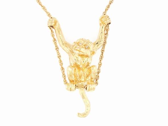 Some of her signature pieces showcase golden monkeys and jewel-toned buddhas. The 14ktVermeil Swinging Happy Monkey necklace with Diamond Eyes, also available in sterling silver, costs $325.