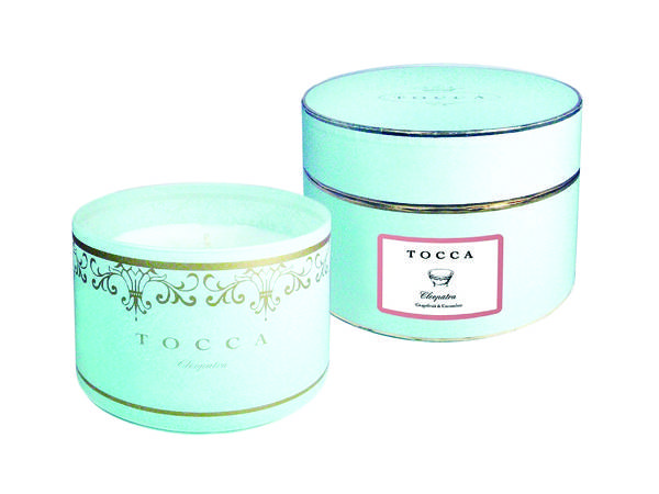 Cleopatra deluxe candela, hand poured into a luxurious gold-decorated glass in classic tocca blue, $62; available at Sephora