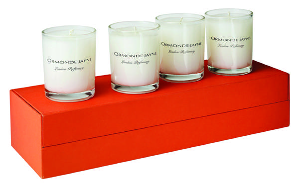 Mini scented candles, $84, large multi-wick scented candle, $278; set of four mini candles, $84,000; available at ormandejayne.com
