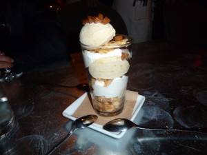 The desserts such as caramel apple pie coupe with roasted apple ice cream and the spiced red wine poached pear coupe with mascarpone ice cream were creamy and decadent. Cheeses from the Larder are also available for a last course as well as cookies and milk for a nice “good night” touch.