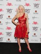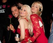Last night, Holly Madison hosted a special Valentine’s Day affair at Tryst Nightclub at Wynn Las Vegas. She walked the red carpet in a red party dress with gold shimmer accents and red peep-toe heels. Joined by her two best friends and “Holly’s World” co-stars Josh Strickland and Angel Porrino, the group was very playful posing on the carpet much to the enjoyment of onlookers in line, waiting to get inside and closer to the reality stars.