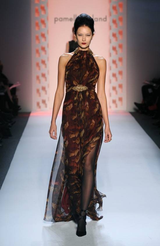 On Feb. 14, acclaimed designer Pamella Roland delivered her signature luxurious style on the runway at The Studio at Lincoln Center. For Fall 2011, Roland drew inspiration from her travels to the Far East, reflecting Roland’s love for travel, luxury, and quality. Since her debut in 2002, and especially since her induction into the Council of Fashion Designers of America in 2010, Roland has created quite the following for herself, including much of Hollywood’s elite with fans such as Angelina Jolie, Hilary Swank, Jennifer Garner, Halle Berry, Eva Longoria and Carrie Underwood.