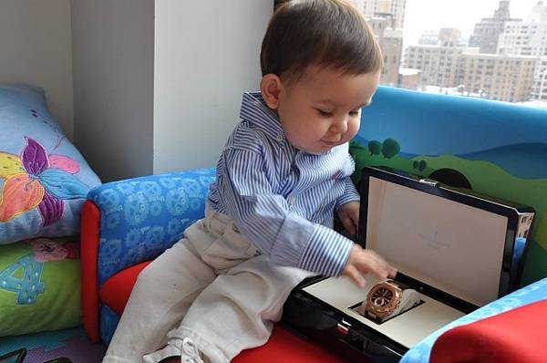 Haute Living Ambassador Paolo Zampolli and his wife, Amanda Ungaro Zampolli, aren’t the only ones in the family who know a good luxury timepiece when they see it. Their nine month old son, Giovanni Zampolli already has a knack for watches. He’s currently eyeing the $55,500 rose gold Patek Philippe Nautilus Chronograph 5980R.