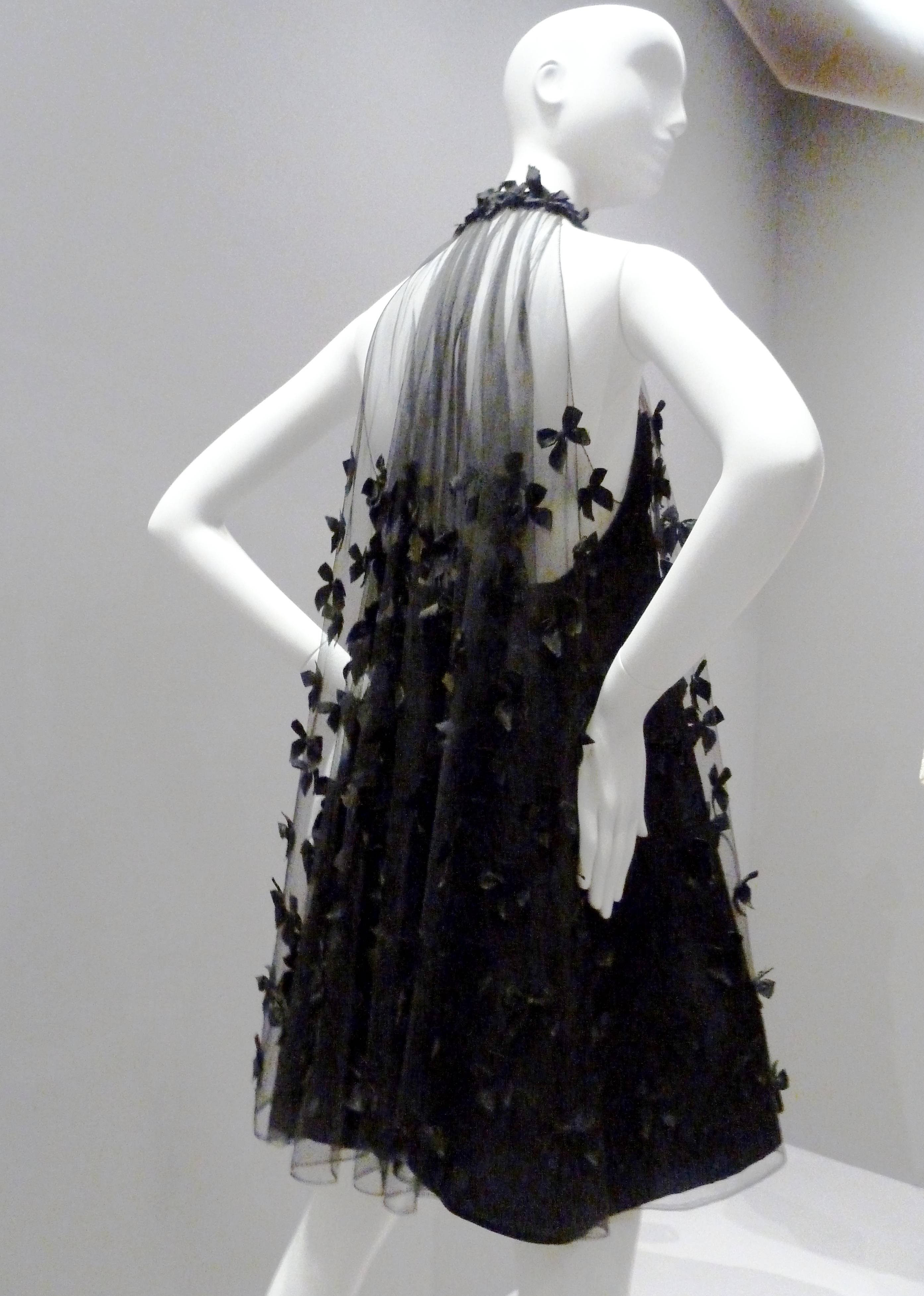From socialites to artists, movie stars, and political figures, Scaasi was responsible for crafting not only wardrobes, but also a strategy to shape who these women were and how they were perceived by the public. The exhibit not only examines his designs, but his relationships with famous clientele, such as Elizabeth Taylor, Mamie Eisenhower, Barbara Bush, Barbra Streisand, Mary Tyler Moore, Ivana Trump, Joetta Norban, Brooke Astor, and more. His talents can be seen in the range of styles he was able to create, from a fabulously playful black tulle dress for Natalie Wood in 1966, to a glamorous and conservative gold brocade gown fit for a first lady. It isn’t hard to see the timelessness of Scaasi’s designs. One of his white silk gowns adorned with silver lace, plain rosettes, and feathers reminded me of a few wedding dresses I have seen recently by Monique Lhuillier and Anne Barge. And what would a fashion exhibit be without a little scandal? This display does not disappoint, showcasing the famous black sequined pantsuit that proved to be very translucent when Streisand wore it on the Oscar stage in 1969!