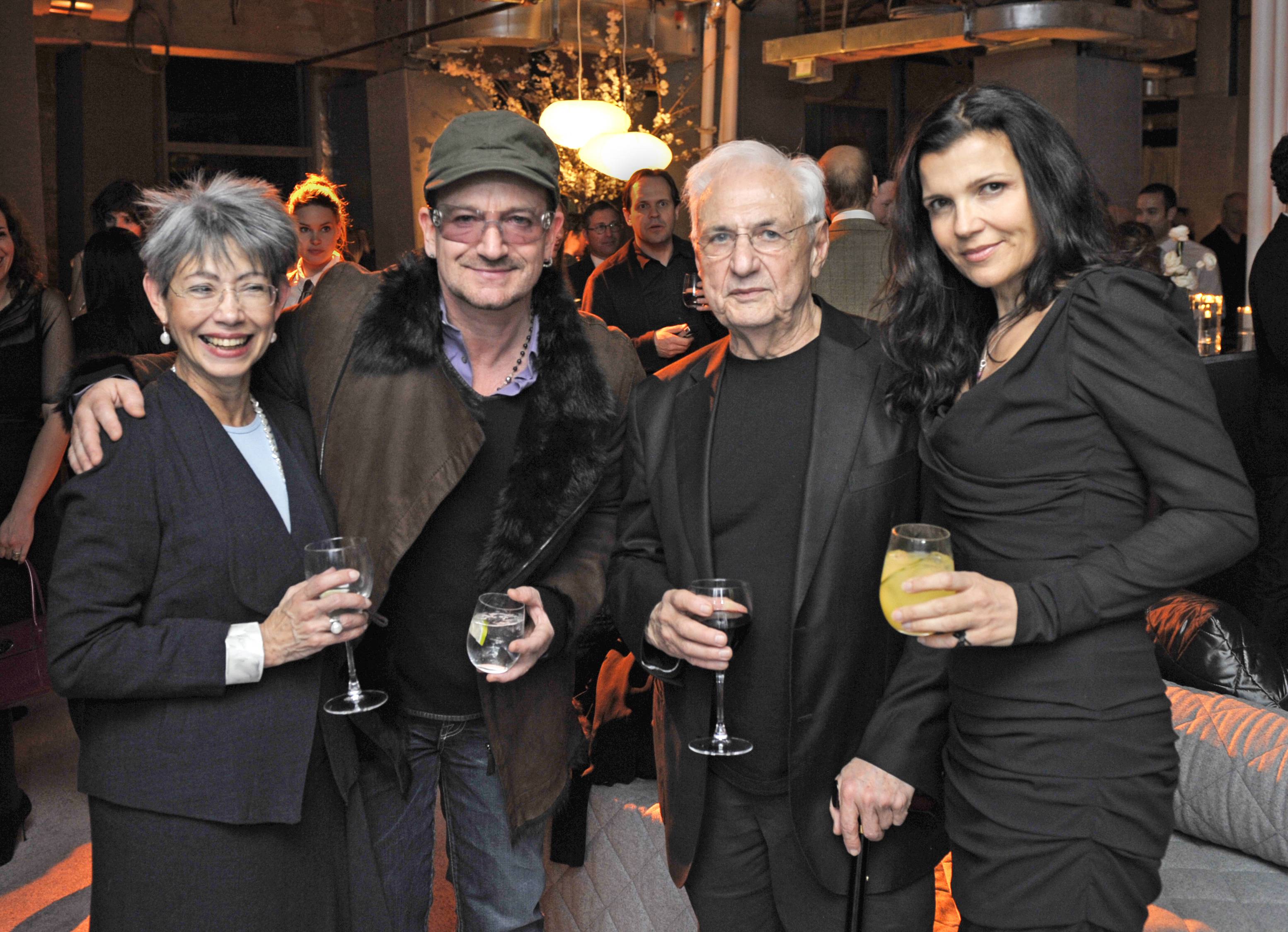 Guests like Bono and wife Ali Hewson, Candice Bergen, Mike Nichols, Ben Gazzara; art world stars Chuck Close, Claes Oldenburg, Cai Guo-Qiang, Thomas Krens, Lisa Dennison, Larry Gagosian; architects Robert A.M. Stern and David Childs, Marilyn Taylor; as well as real estate and business leaders Marshall Rose, Peter Lewis, Mary Ann Tighe and Kathy Wylde, were able to enjoy 360-degree sunset views of New York City, thanks to the space’s signature large free-form bay windows.