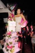 Nuvo decorated Eve with pink throw pillows and balloons, reminiscent of the liqueur’s rosy hue. Longoria and friends, which included actor and TV host Mario Lopez and his girlfriend Courtney Mazza, sipped on the “The Sparkling Eva,” a cocktail created with champagne and Nuvo, garnished with a fresh strawberry. The group danced to music by DJ Sky Nellor and enjoyed cupcakes from the Cupcakery. Inside the club, the birthday girl was presented with an over-the-top, three-and-a-half foot pink, floral cake adorned with “Happy Birthday Eva” in silver, glittering letters. During the cake presentation, Longoria was serenaded by up-and-coming artist Tino Cuory, who sang her “Happy Birthday” while the crowd snapped photographs.