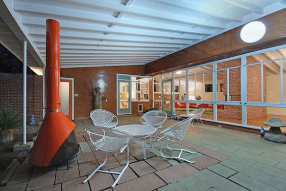 A whimsically redone mid-century modern home in Forest Hills close to White Rock Lake is on the market. Vaulted ceilings, exposed beams, central brick fireplace, wall of windows & original powder coated kitchen cabinets are authentic to the ERA. The courtyard, illuminated with vintage globes reclaimed from a Chicago library provides a fun spacious area to entertain. It’s a rare opportunity to own a Preservation Dallas 2006 Preservation Achievement Award winner. 8534 Eustis Avenue is among four residential restorations and rehabs feted by Preservation Dallas. The honor was given to owner and hair style guru Todd Allen.