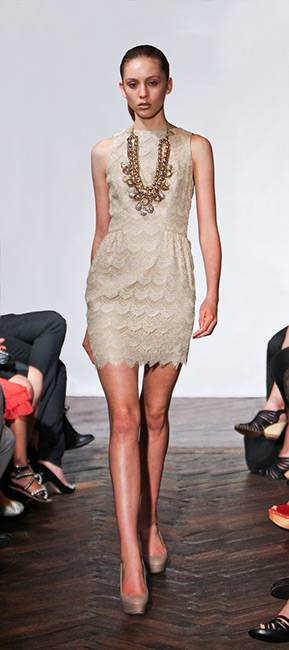 Notorious for his cocktail dresses,intricate detailing, and the updated trench, designer Rolando Santana has added over-the-top necklaces to his label. I recently had the pleasure of meeting him in person and seeing his enthusiasm first hand when talking about his latest accessories venture. Each piece makes an over the top statement, perfectly complimenting the nude Spring palette, playing with light silk burnouts and structured yet soft jacquards and cotton fabrics. “My favorite component about the collection is that each piece is very versatile and can take a woman to a variety of events, from a summer night on the beach to a fancy elegant event opening,” explains Santana.