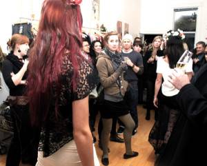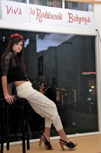 The intimate setting and street side window fashion show left passerbyers struck with allure and a hint of glam. The evening began with bohemian inspired acts and entertainment in order to set the mood for the redefined fashion show. The quaint interior of the boutique is built with misconception in mind as the backdoor ushers to an unpredictable flight of stairs that lead to a bohemian lit and inspired garden. Performances reined the dimly lit backyard of Loft 1513 as jesters, tango dancers and poets acted out the inspiration behind the clothing.