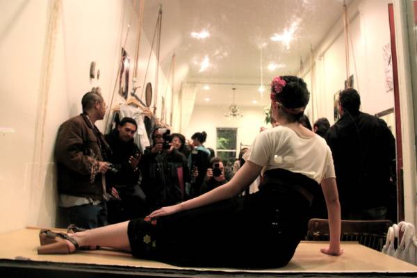 The intimate setting and street side window fashion show left passerbyers struck with allure and a hint of glam. The evening began with bohemian inspired acts and entertainment in order to set the mood for the redefined fashion show. The quaint interior of the boutique is built with misconception in mind as the backdoor ushers to an unpredictable flight of stairs that lead to a bohemian lit and inspired garden. Performances reined the dimly lit backyard of Loft 1513 as jesters, tango dancers and poets acted out the inspiration behind the clothing.