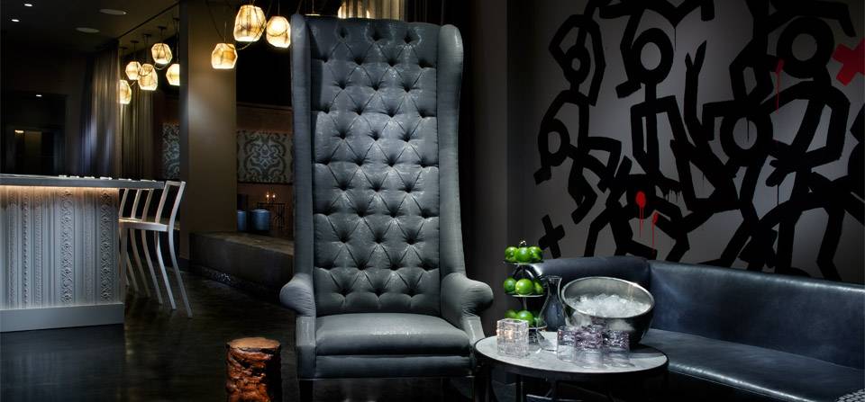 The uber-sexy eclectic interior blends rich, dark floors with soft fabrics and bold patterns on the walls of the dining room. Stick-man artwork, courtesy of Thomas Shoos himself, and quirky furniture pieces pop the pretentious bubble with a little touch of humor. Socialites can escape to the rooftop after dinner for a more lounge-like feel or burn some calories off at the 1,000-square-foot nightclub also located on the capacious premises.