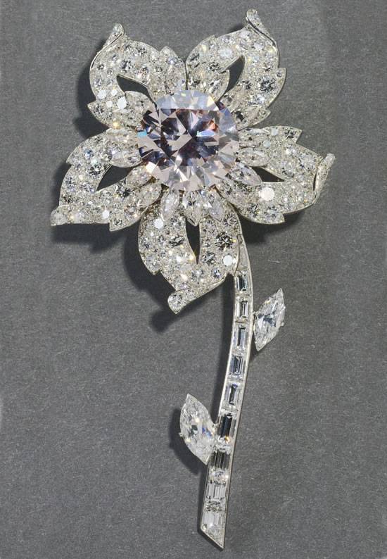 Other notable pieces are a pair of earrings that have been worn by five different queens during their coronation, Queen Victoria’s 2,287-diamond miniature crown, and her magnificent fringe brooch set with a large emerald-cut brilliant diamonds surrounded by 12 other large stones, and suspended by nine diamond chains. The famous Williamson Brooch, with its incredible Tanzanian pink diamond, will also make its appearance along with the “Girls of Great Britain Tiara” – a wedding gift to Princess Victoria Mary of Teck.