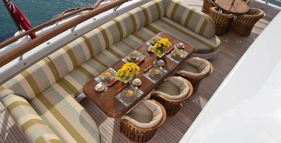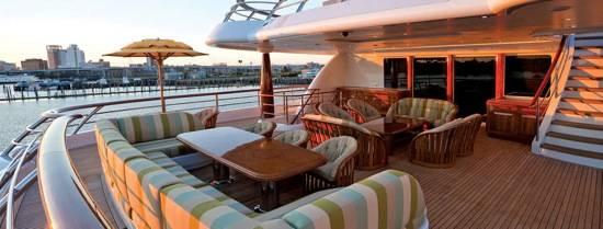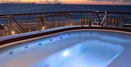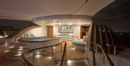 A stylishly designed sun deck is the ideal spot for leisure and entertaining with plenty of observation chairs, sun loungers, card tables, a bar, and large whirlpool spa. The three additional decks offer a variety of open of shaded areas, making the entertaining and relaxing properties of the luxe vessel virtually limitless.