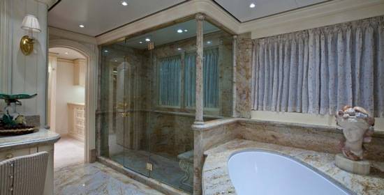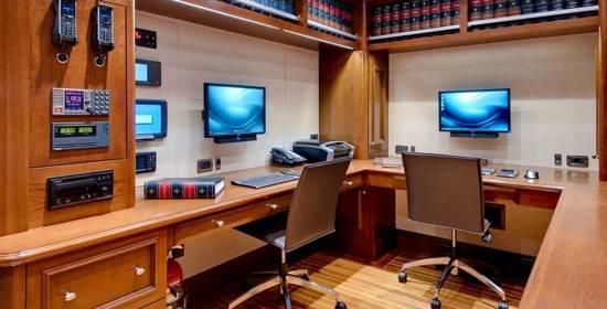 The owner accommodations boast a private deck with a full beam master stateroom, study and lounge area, a gymnasium, day spa, and spacious his/hers bathrooms outfitted with exquisite marbles. The foyer of the area leads into a large saloon with a complete bar area, leisure lounge, and theatre area.