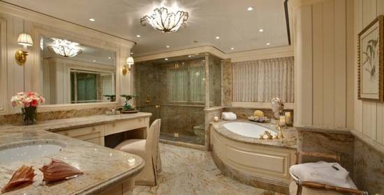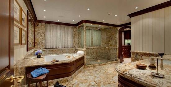 An ever-imperative attention to detail succeeded to uphold the grandeur of the vessel while accents such as rich rosewoods and oaks retain a feeling of warmth and luxurious comfort. A grand spiral staircase unties all four decks in addition to an elevator for added convenience to accommodate all guests.