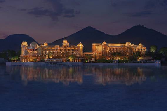 Palatial details and indigenous architecture capture the essence of the newly built Leela on the shores of Lake Pichola in New Delhi, India. The extravagant entrance, leads to reception rooms with soaring cathedral ceilings, silver settees, splendidly open courtyards, and a wall of water imbuing the immediate sense of peace and serenity, exactly what a price tag of such magnitude should offer. And that’s just the entrance.