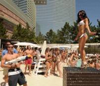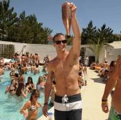 After a long day in the heat, Ballas was presented with a disco ball-shaped cake by a bevy of Liquid’s sexy go-go dancers who helped Ballas blow out the candles, while he was surrounded by friends and fellow daytime revelers. Even though girlfriend and “American Idol” starlet Pia Toscano was unable to attend the fete at the last minute, Ballas partied the day away, treating fellow partygoers to an unforgettable afternoon on the Vegas strip, partaking in Nivea for Men’s “Look Like You Give a Damn” special poolside services and massages, noshing on fish tacos, quesadillas and shrimp cocktail. Ballas ended his day at Liquid by throwing his friends in the pool and dancing on his daybed, after indulging in a super soaker fight with champagne-filled water guns.