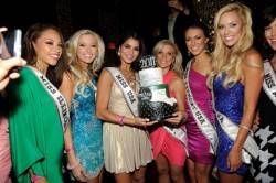 Tao’s Worship Thursday was graced by 44 stunning contestants from the 2011 Miss USA Pageant when they stopped in at the massive club at the Venetian Thursday night. Kandy Wrappers presented the night as the contestants celebrated. On hand were 2010 Miss USA Rima Fakih along with Miss Massachusetts Alida D’Angona and Miss Nevada Sarah Chapman. The three joined DJ Jason Lema in the booth as he got on the mic to congratulate all of the contestants and wish them good luck.