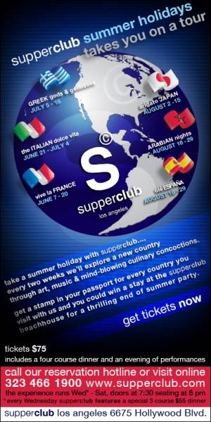 Take a trip without leaving Los Angeles. The infamous Supperclub summer world tour beings June 8th, but you will need your passport. How to describe it? It’s a true feast for all your senses, merging food, drinks, fashion, music, film, entertainment, art and culture into one.