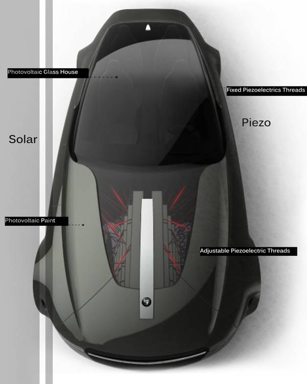 Under the surface, the vehicle is an extraordinary green machine, acting as a personal tool for the consumer by utilizing a process similar to the way someone may grow fruits and vegetables. By engaging the user as part of the vehicle, one can tweak and tailor the piezoelectric threads based on their current environment to maximize the amount of energy that can be generated during the trip. Now that’s green.