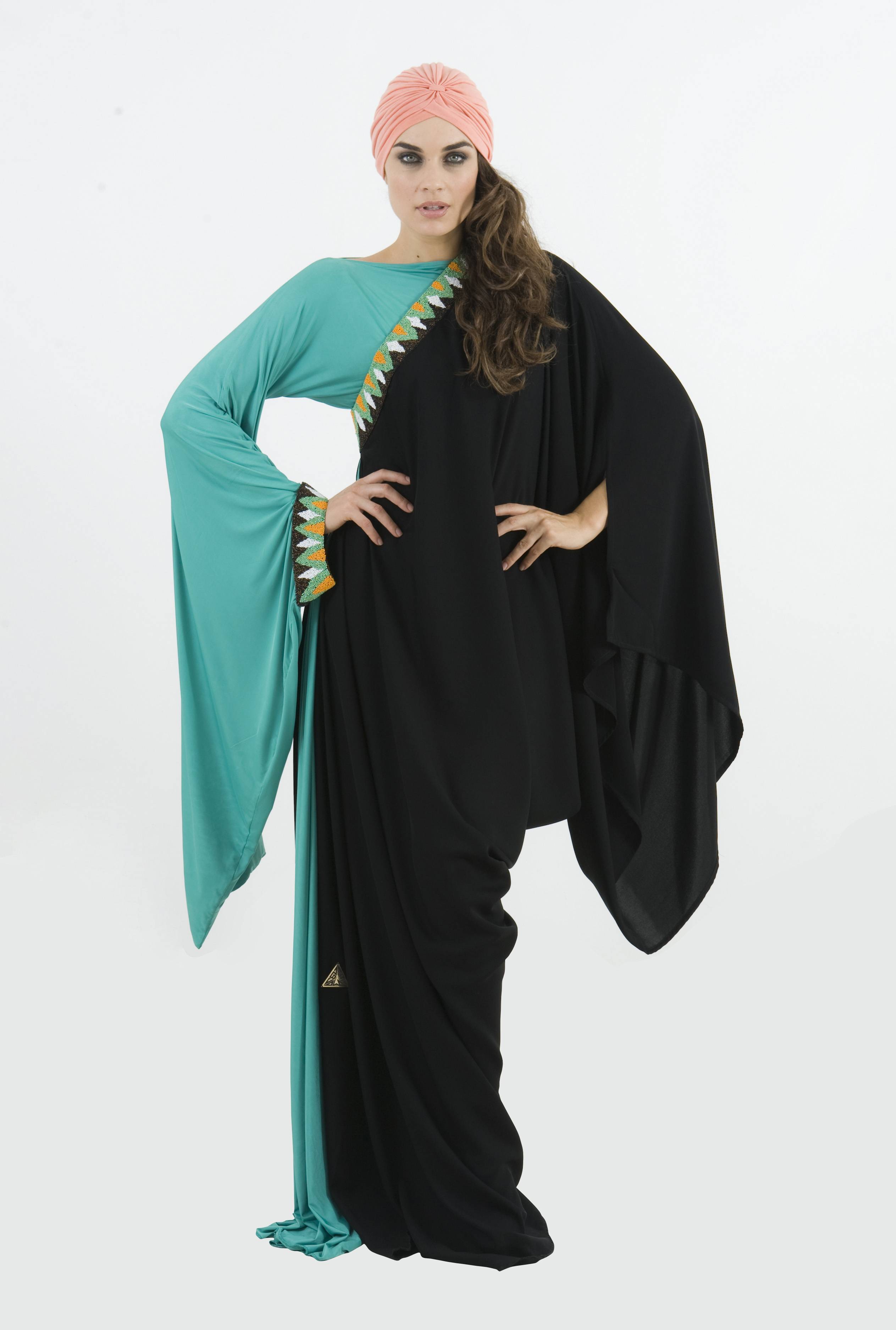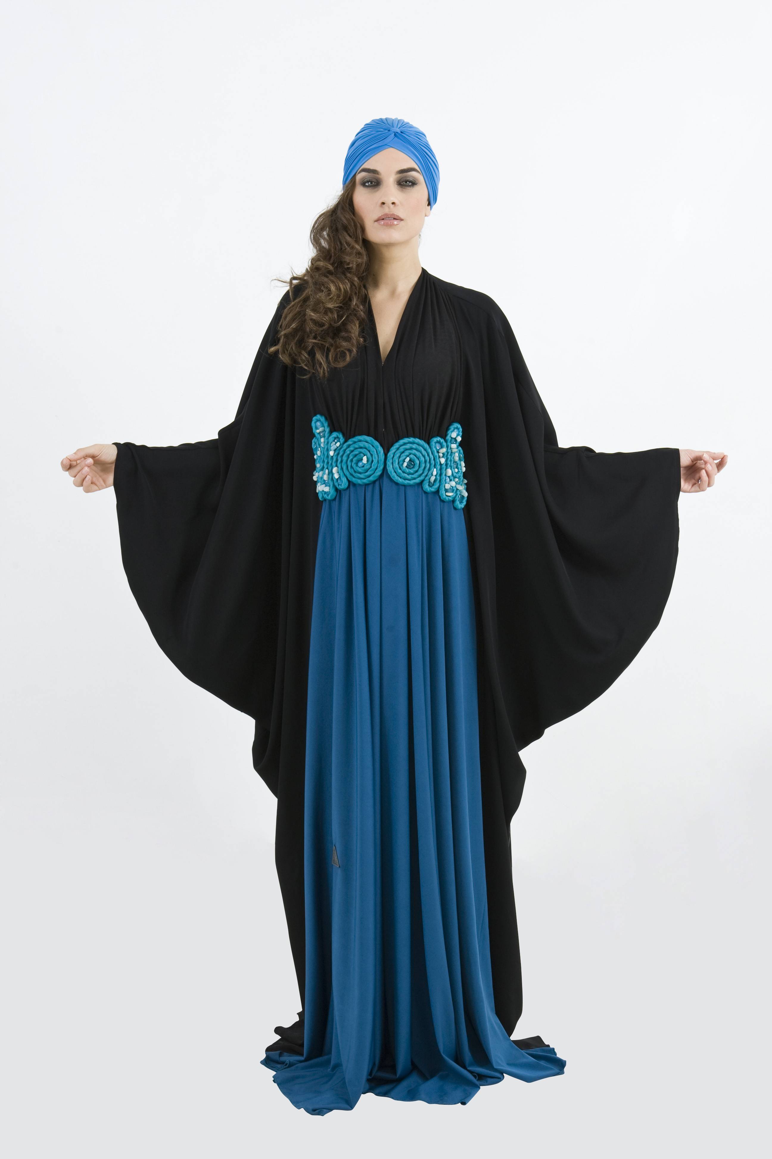 DAS was launched in 2008 by two Emirati sisters Reem and Hind Beljafla. The concept was born when Reem, the eldest of the two sisters, decided to launch her own range of abayas. She had a love for fashion and had recently attended several design courses at St. Martin’s College in London. Immediately after her studies she worked with renowned florist Jane Packer where she learned the art of pairing colors, a technique she employs in her designs which are full of vibrant shades of red, green, magneta and blue.