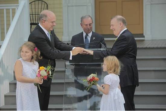 Yesterday evening, July 24, Haute 100 New York member Mayor Michael Bloomberg changed the game by officiating a same-sex marriage in New York. Not only did this take place on the first day of marriage equality in New York, but the marriage was between two of Bloomberg’s staff members, John Feinblatt, his chief policy advisor, and Jonathan Mintz, the city’s commissioner for consumer affairs.