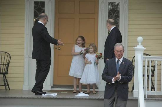 The wedding was attended by approximately 150 guests, including City Council Speaker Christine Quinn, police commissioner Ray Kelly, former deputy mayors Kevin Sheekey and Ed Skyler, and a slew of reporters. Bloomberg brought tears to the eyes of those present as he said, “It’s taken New York State a long time to recognize what the two of you must have known instinctively: that two people who want to be together, and raise a family together, and spend the rest of their lives together – have a relationship – and a beautiful family – that, in every way, deserves to be recognized and commemorated equally under the eye of the law.”