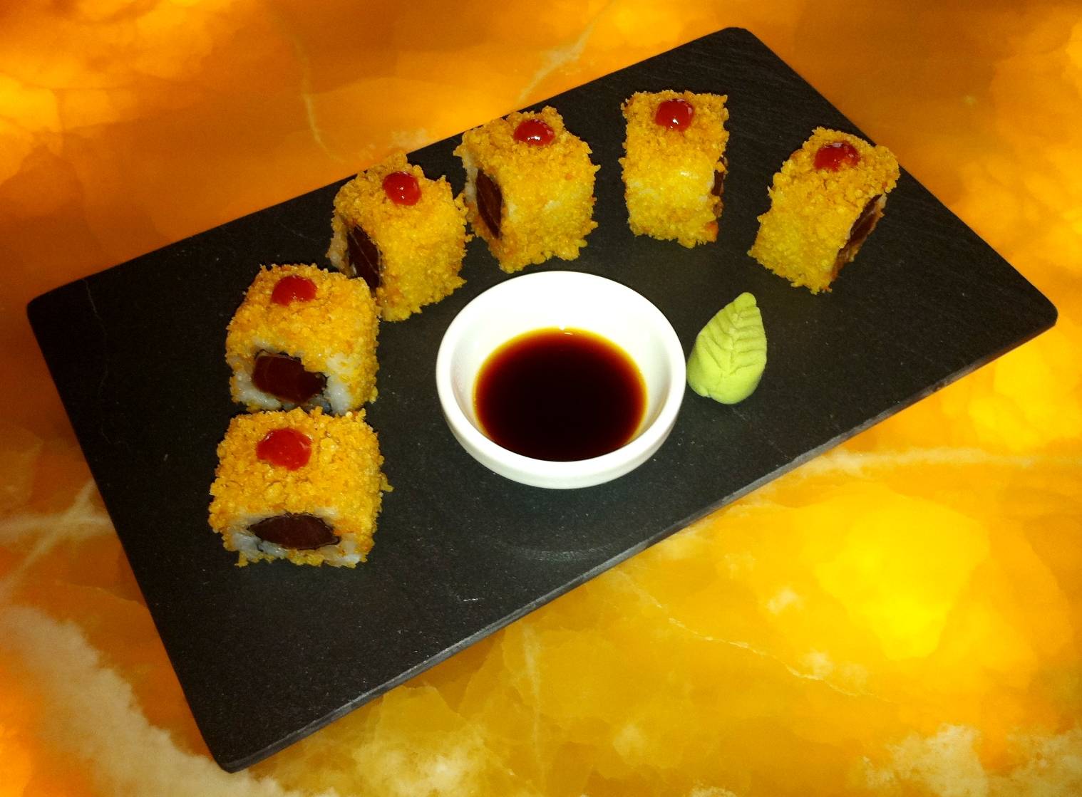 Now one of the most popular night time venues in the DIFC, I had often visited Caramel for after work drinks but had yet to experience a full course meal. The menu is a surprising two pages long and includes American signature dishes from the Caramel Bellagio such as Lobster & Grilled Mango Tacos, Ponzu Yellow Fin Tuna, Mac & Cheese Sticks with Truffles, and Petite Kobe Sliders. To start with, my guests and I opted for the TNT Shrimp which was lightly battered with tossed with spicy Japanese mayo; the Spicy Tuna Rolls of tempura crusted seared yellow fin tuna and the Miso Glazed Black Cod starter made with baby gem, pickled daikon and carrot and crisp kaitafi filo. An immediate hit, the black cod is fragrant, sweet and has a delectable velvety texture which appears to melt in your mouth- definitely one of the best in the city.