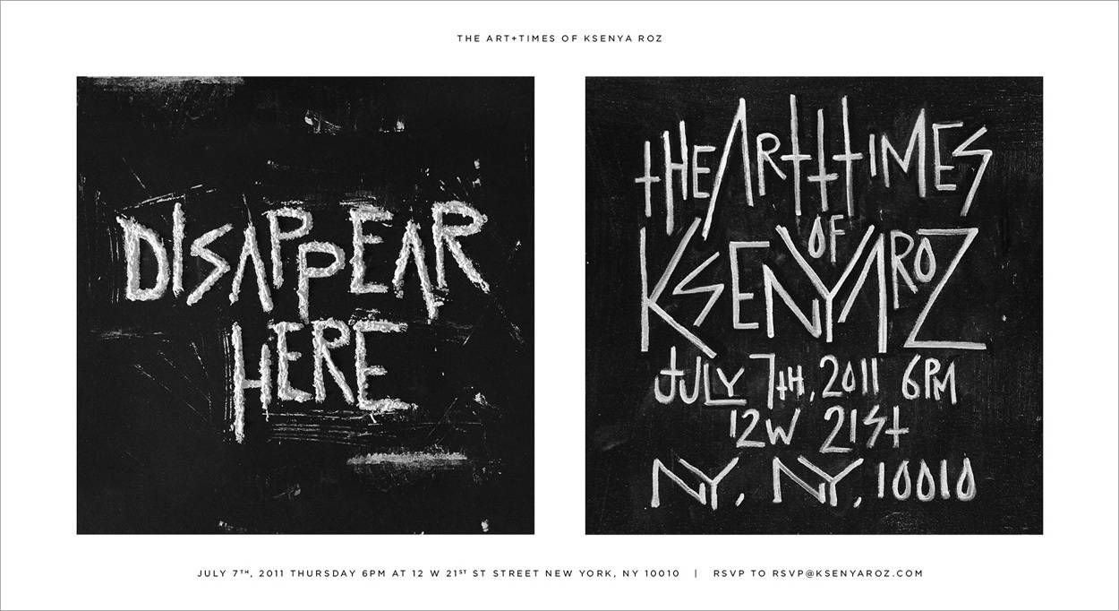 Artist Ksenya Roz is turning heads with the success of her first solo exhibit Disappear Here; The Art and Times of Ksenya Roz, curated by Yana Tara which opened July 7th in the Twelve 21 Event Space in New York City. Roz used every avenue possible such as photography, digital manipulation, street art and found objects to express her opinion on today’s numb and alienated society as one that projects hyperconsumeristic ideals upon the masses.