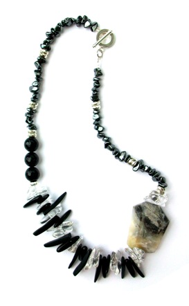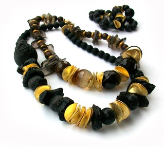 Myka68 is made up of Venezuelan duo Michele Goldstein & Carolina Preschel. Together they create one-of-a-kind pieces using materials like silk, leather and semi-precious stones.