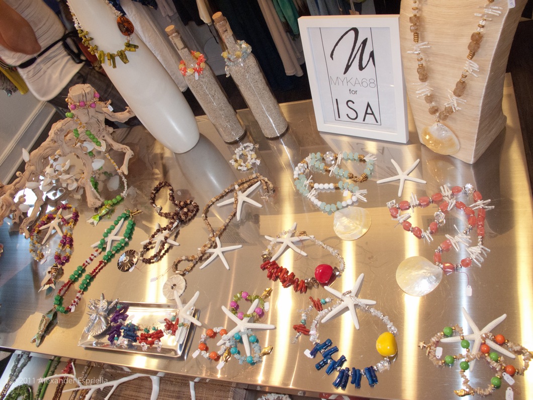 ISA boutique owner Isabel Aguiar joined forces with Myka68 to create a jewelry line as ornate and unique as her store. The resort collection features nautical-themed pieces in vibrant hues. Beads, stones, and pendants bring the line to life. Such splendid results can only be expected, though, as the collection is a product of three very imaginative people.