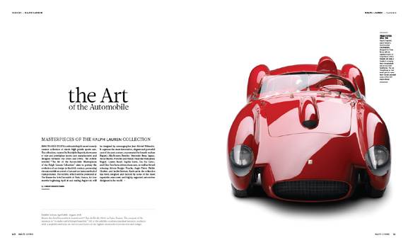 Pick up the current issue to read about and see photos of the exquisite cars that make up Ralph Lauren’s impressive exhibit, including pieces from Bugatti, Bentley, Mercedes-Benz and Aston Martin.