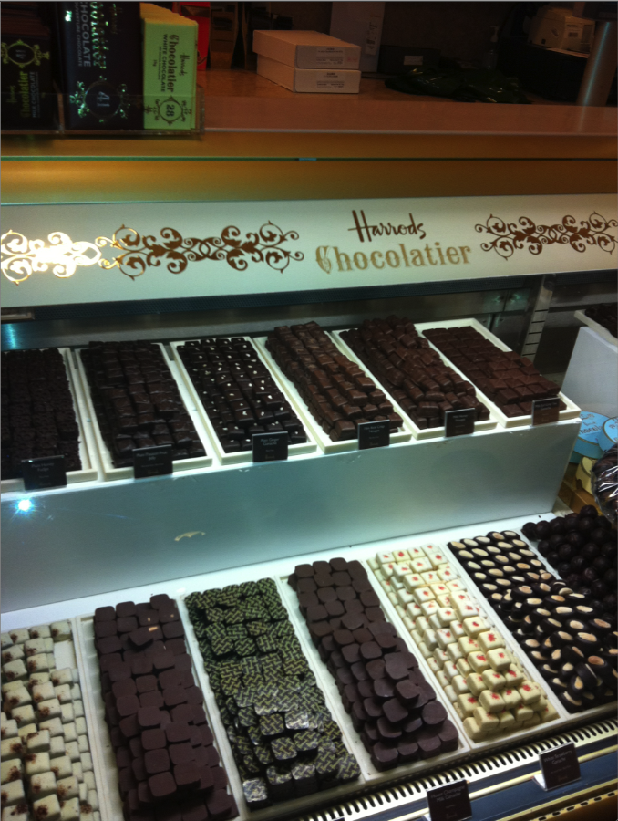 My first stop, of course, was Harrod’s. To call it a department store would not be doing it justice. Harrod’s is a museum. The most impressive part of the store was the “Willy Wonka-esque” chocolate and candy factory. With every fudge, jellybean, and macaroon flavor imaginable, you would be sure to satisfy any craving. Being that it is Spring/Summer sale season in stores, I did not spend much time at Harrod’s. The overwhelming heard of people clouded my instinct to shop a sale. As I was exiting the store, I noticed a striking Arab woman dressed impeccably. She doned a traditional black hijab, and paired it with sky high, cobalt blue heels and Chanel’s Extra Large Reissue handbag in brown crocodile skin. What a way to work with what she’s got! This was when I realized that in London style is brave, and a bit dangerous.