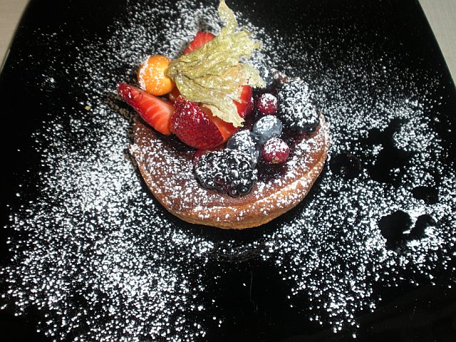Course Five: Crespelle (crepes) served with berries and cognac.
