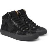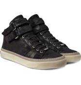 According to Sybarites, the anticipated collection will feature a mix of formal and casual shoes, as well as the expected statement pieces of the collection, like the “porno paisley” brocade evening slippers and head-turning lace-ups in electric purple and leopard. While descriptively this may seem loud, the aesthetic in actuality takes on a restrained elegance. Also to look forward to are refined monk-strapped shoes in chic matte black leather, shearling-lined biker books, sneakers – both low and high-topped – in a variety of bright colors and bold prints, skate shoe-inspired luxury slip-ons, as well as classy all-black sneaks and a stunning pair of gray flannel high-tops lined with luxe sheepskin.