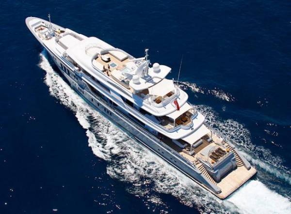 There is also a private office that can become part of a stateroom with a double pullman bunk if required. An elevator serves the four decks for moving about the vessel in comfort.  Siren’s swimming platform is part of a duplex beach area that includes a circular balcony and a substantial terrace.  The highest deck is a sunbathers’ haven with a Jacuzzi pool edged by double sunbeds.  The yacht also features a touch and go helipad.  Her MTU 16V4000M60 2,360 hp engines make for a cruising speed of 14 knots and a top speed of 17 knots.